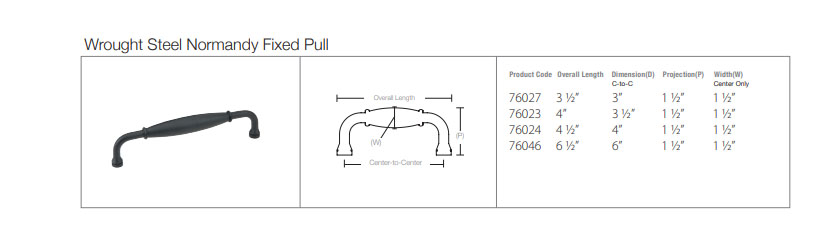 Emtek 76027, Wrought Steel Normandy Fixed Cabinet Pulls, 3″ C-C, Shown In Flat Black Steel