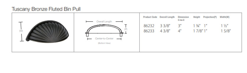 Emtek 86232, Tuscany Bronze Fluted Cabinet Bin Pull, 3″ C-C, Shown In Medium Bronze