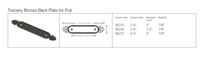 Emtek 86236, Tuscany Bronze Backplate For Cabinet Pull, 7/8″ x 5-3/4″, Shown In Medium Bronze