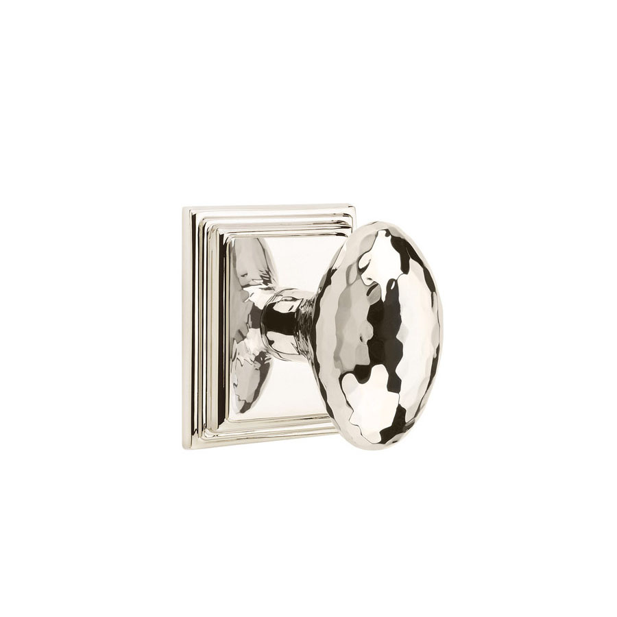 Emtek Hammered Egg Door Knob Modern w/Wilshire Rosette, Shown In Satin Brass
