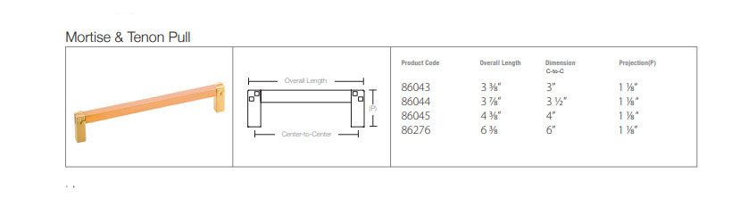 Emtek Hardware 86045, Mortise Tenon Cabinet Pull, 4″ C-C, Shown In Satin Nickel