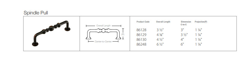 Emtek Hardware 86130, Spindle Cabinet Pull, 4″ C-C, Shown In French Antique