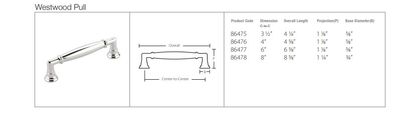 Emtek Hardware 86476, Westwood Cabinet Pull, 4″ C-C, Shown In Polished Chrome