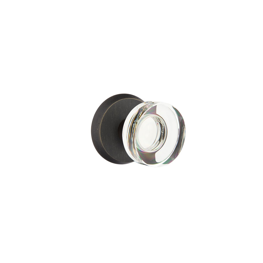 Emtek Hardware Bronze Modern Disc Crystal Clear Door Knob w/#2 Rosette, Shown In Medium Bronze