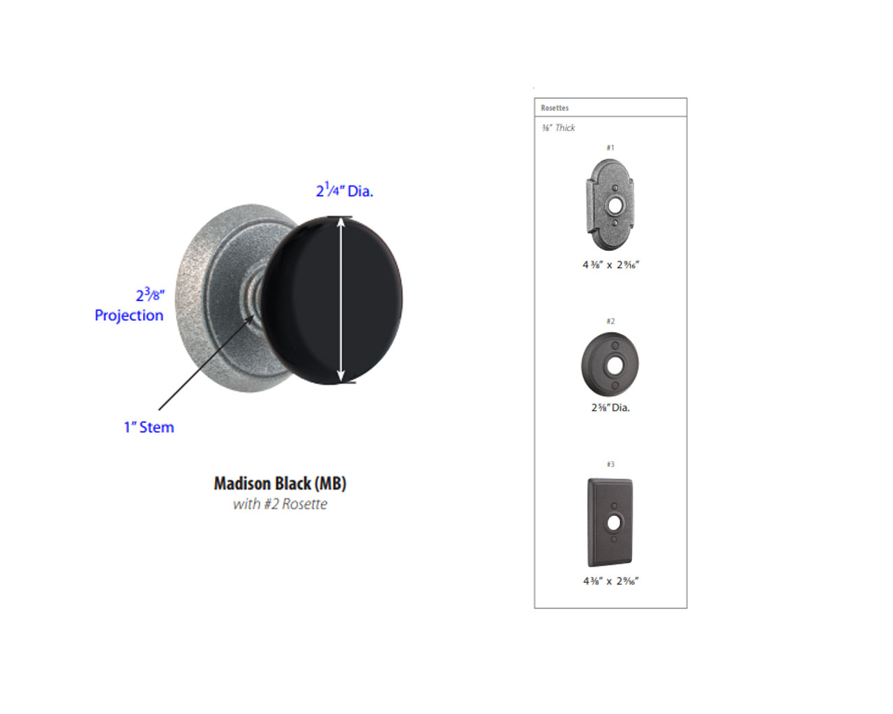 Emtek Hardware Madison Black Wrought Steel Door Knob w/#2 Rosette, Shown In Satin Steel