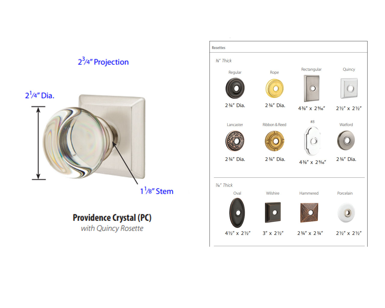 Emtek Hardware Providence Crystal Door Knob w/Lancaster Rosette, Shown In Pewter