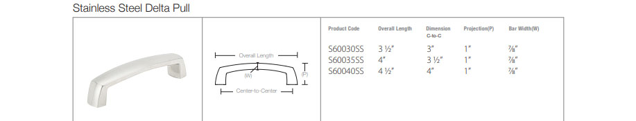 Emtek Hardware S60040SS, Brushed Stainless Steel Delta Cabinet Pull, 4″ CC