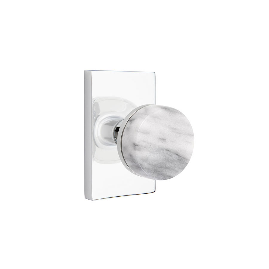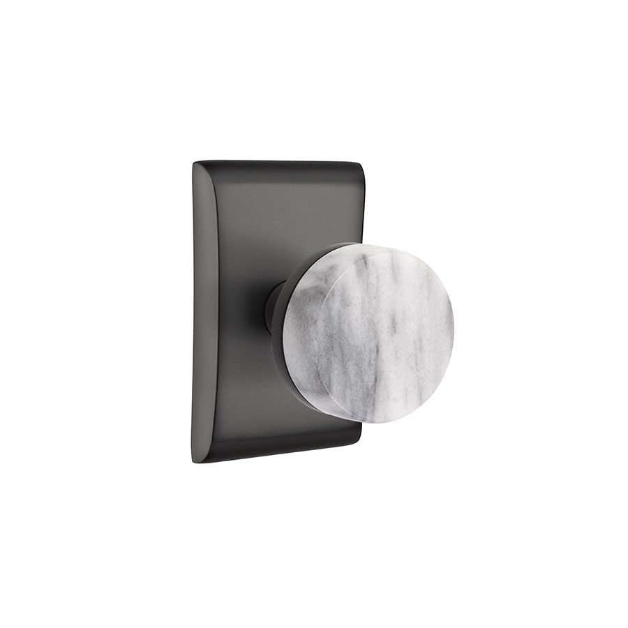 Emtek Select Conical White Marble Door Knob w/Neos Rosette & Conical Stem Shown In Flat Black